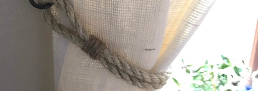 -Next I measured how much it would take to wrap the curtain from front to back and doubled that with the larger rope.